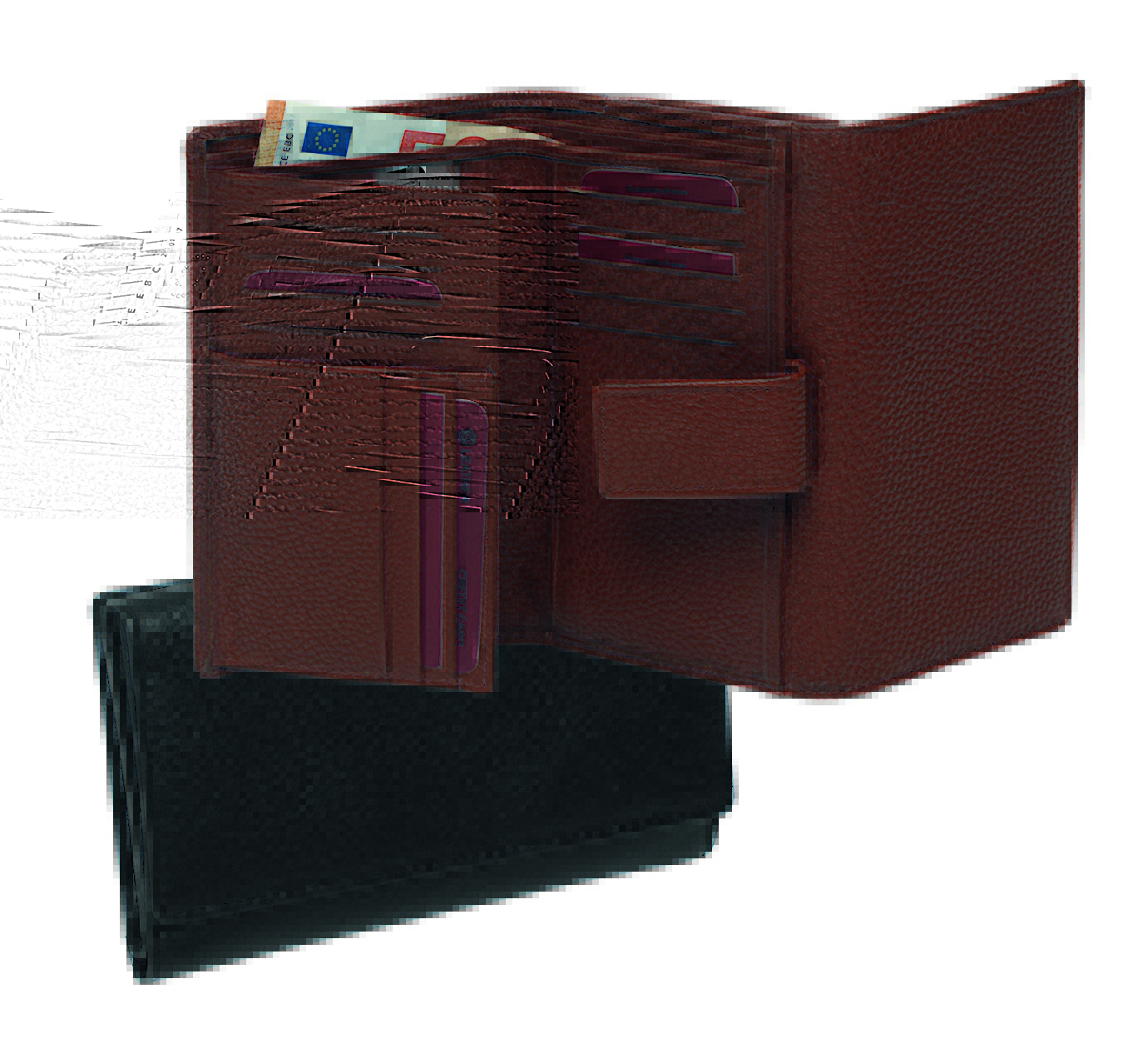 Women's leather wallet FLO 1, genuine leather,outside flap,2 banknote seat,outside coin seat,13 seats for credit cards,3 seats for driving license etc.,1 extra seat
