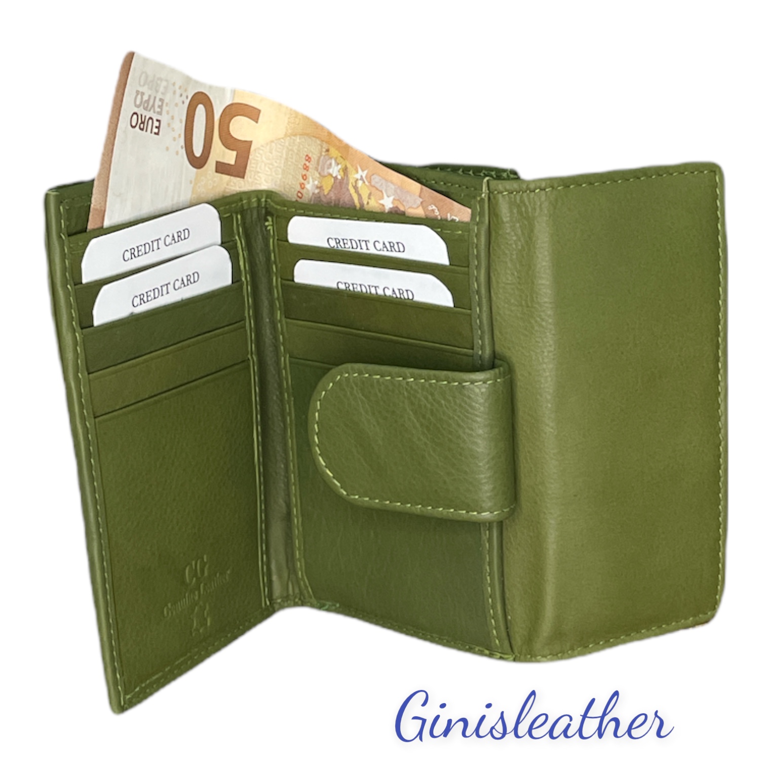 Women's leather CG 70 wallet, genuine soft leather,2 banknote seat,outside seat for coins,8 seats for credit cards,2 seats for driving license etc.,2 extra seats,outside flap