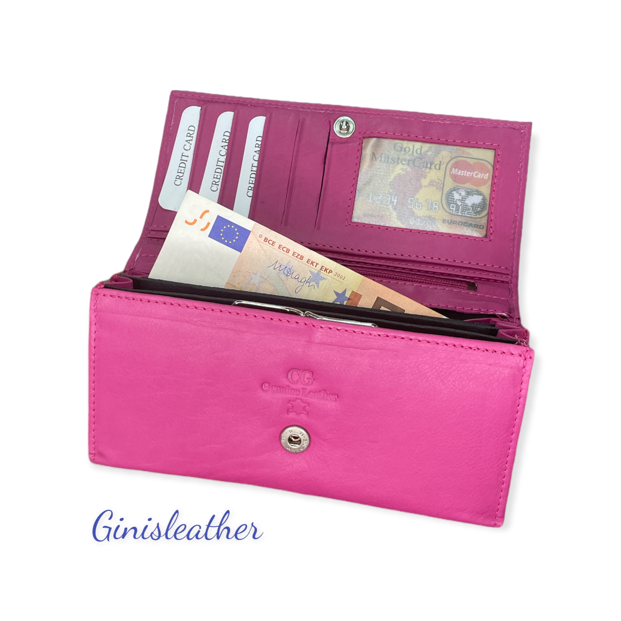 Γυναικείο πορτοφόλι δερμάτινο CG 115, γνήσιο δέρμα μαλακό, 3 θέσεις για χαρτονομίσματα, θέση με μεταλλικό κλιπ για κέρματα, 5 θέσεις για πιστωτικές κάρτες,1 θέση με διαφάνια για ταυτότητα ή ότι άλλο,3 θέσεις έξτρα,κρυφή θεση με φερμουάρ