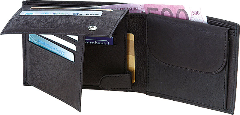 Ανδρικό πορτοφόλι δερμάτινο CG 13, γνήσιο δέρμα μαλακό, 1 θέση για ταυτότητα δίπλωμα ή ότι άλλο, 2 θέσεις για χαρτονομίσματα, θέση για κέρματα,2 θέσεις με διαφάνια,9 θέσεις για πιστωτικές κάρτες,
