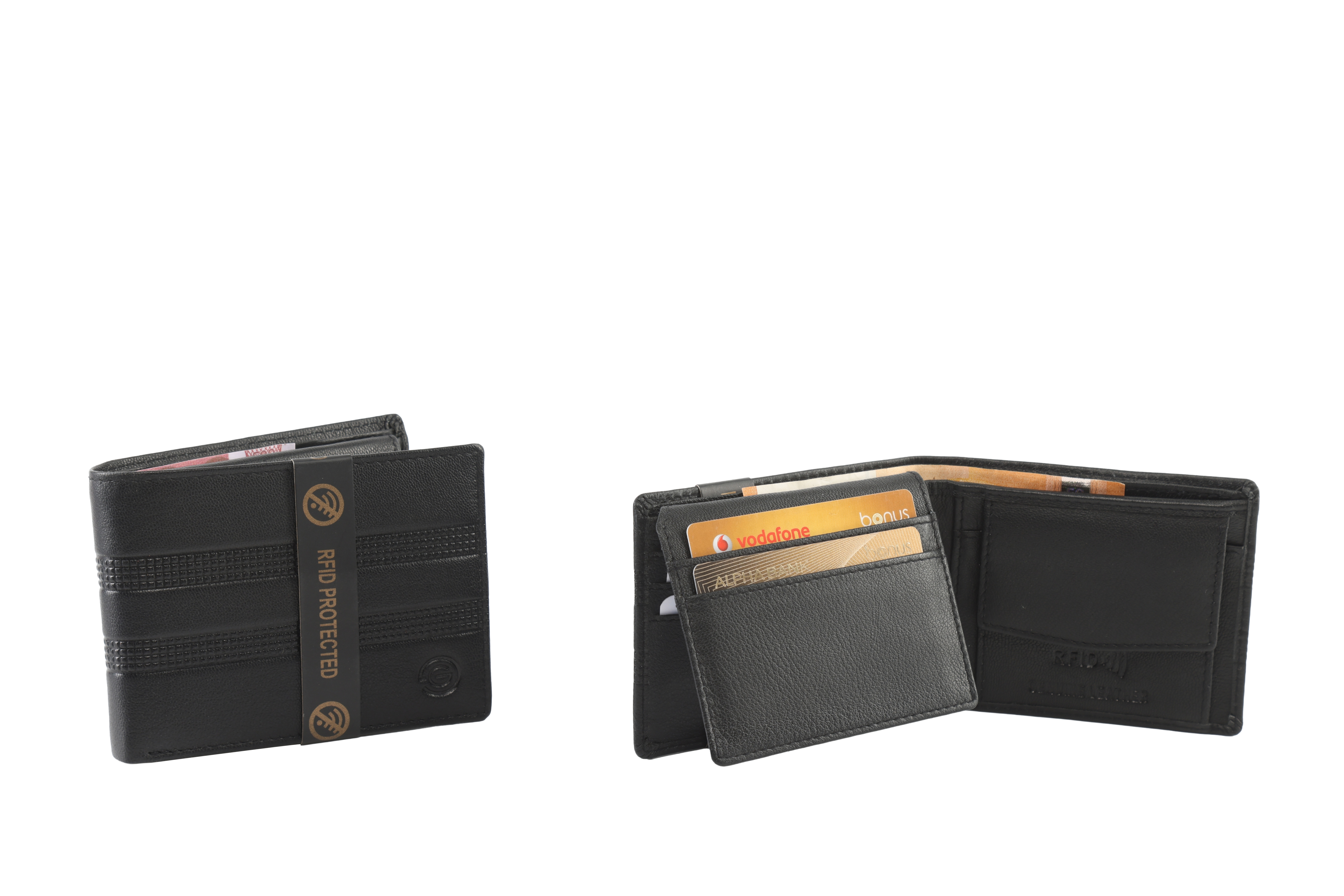Ανδρικό πορτοφόλι δερμάτινο GLS 1, γνήσιο δέρμα μαλακό, 1 θέση με διαφάνια, 2 θέσεις για χαρτονομίσματα, θέση για κέρματα, 5 θέσεις για πιστωτικές κάρτες, 2 θέσεις έξτρα,
