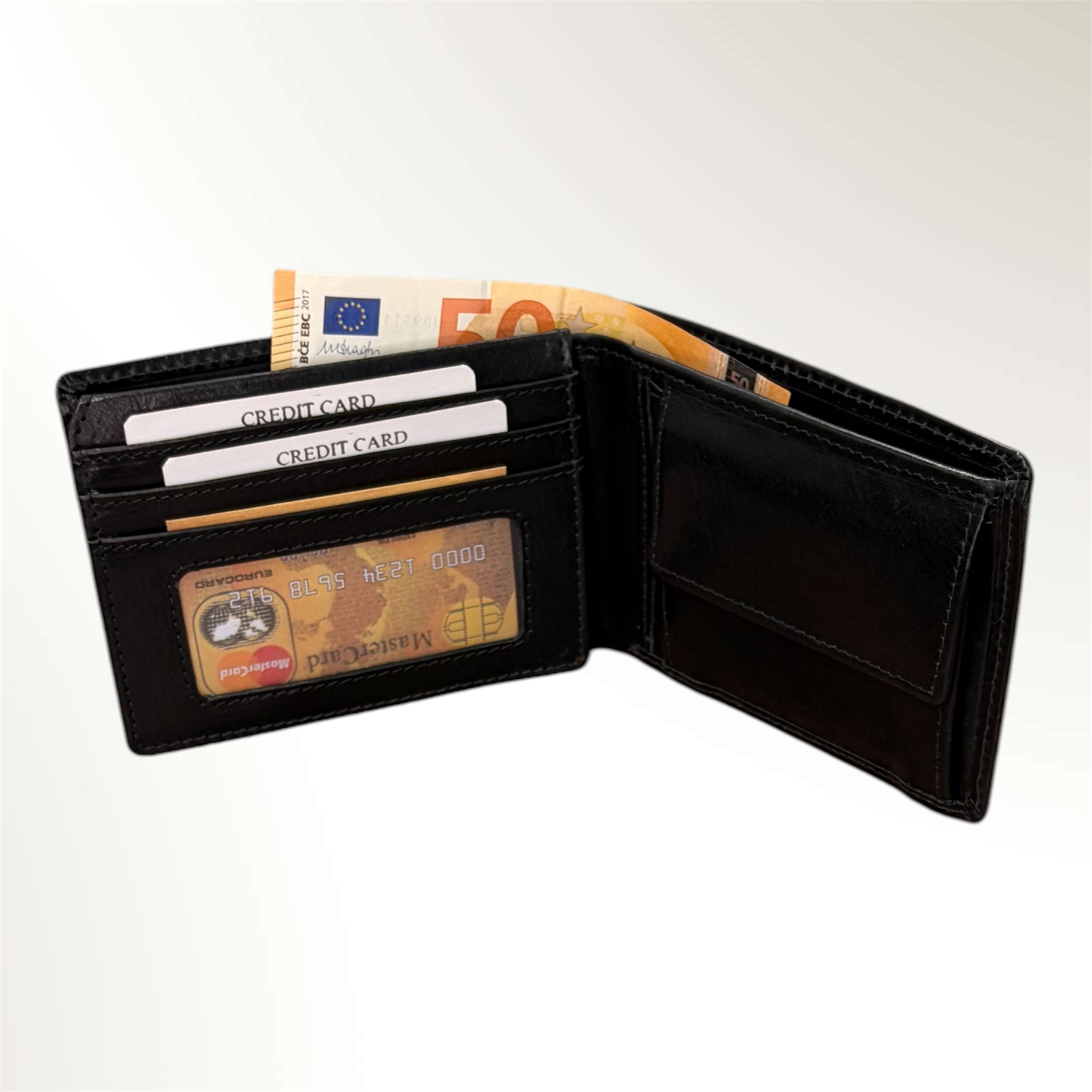 Ανδρικό πορτοφόλι δερμάτινο VT 10,γνήσιο δέρμα,1 θέση με διαφάνια για δίπλωμα ή ότι άλλο,2 θέσεις για χαρτονομίσματα,θέση για κέρματα,8 θέσεις για πιστωτικές κάρτες,θεση για ταυτότητα,2 θέσεις έξτρα